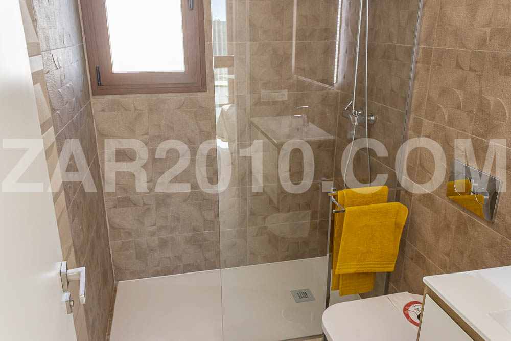 On the first floor, two double bedrooms with built-in wardrobes and en-suite bathrooms with showers maximize comfort and privacy. All bedrooms are designed to receive abundant natural light and offer pleasant views of the surroundings.