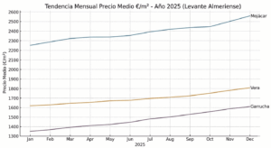 Actualmente, la tendencia sigue siendo alcista. Si bien la lógica económica tradicional sugeriría una posible ralentización en la subida de precios tras el empujón de 2025, el Levante Almeriense cuenta con un “as bajo la manga” que rompe esa lógica: la Inversión en Infraestructuras.
