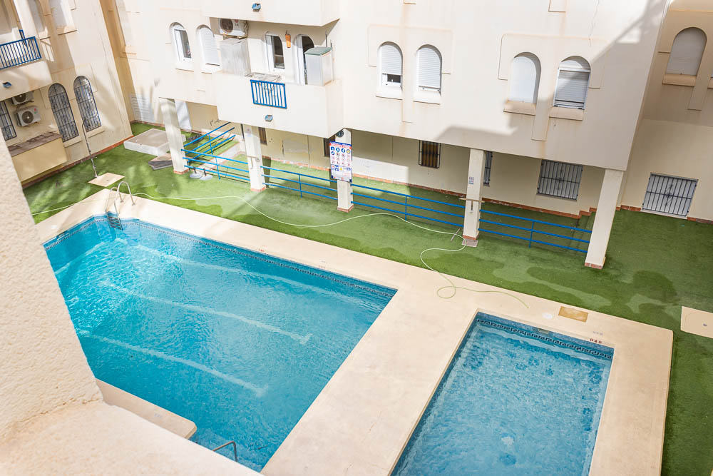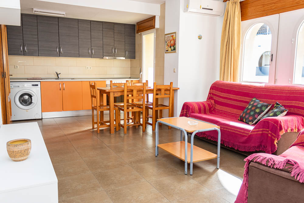 Con una superficie construida de 95,91 m2 y una superficie útil de 79,89 m2 (sin contabilizar el inmenso solarium), este apartamento se entrega totalmente amueblado y equipado. Además, cuenta con aire acondicionado y ventanas de aluminio, estando listo para entrar a vivir. Disfruta de la vida al lado del supermercado Mercadona, la famosa Calle Mayor, y todos los servicios abiertos todo el año.
