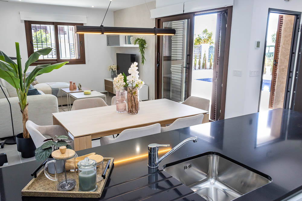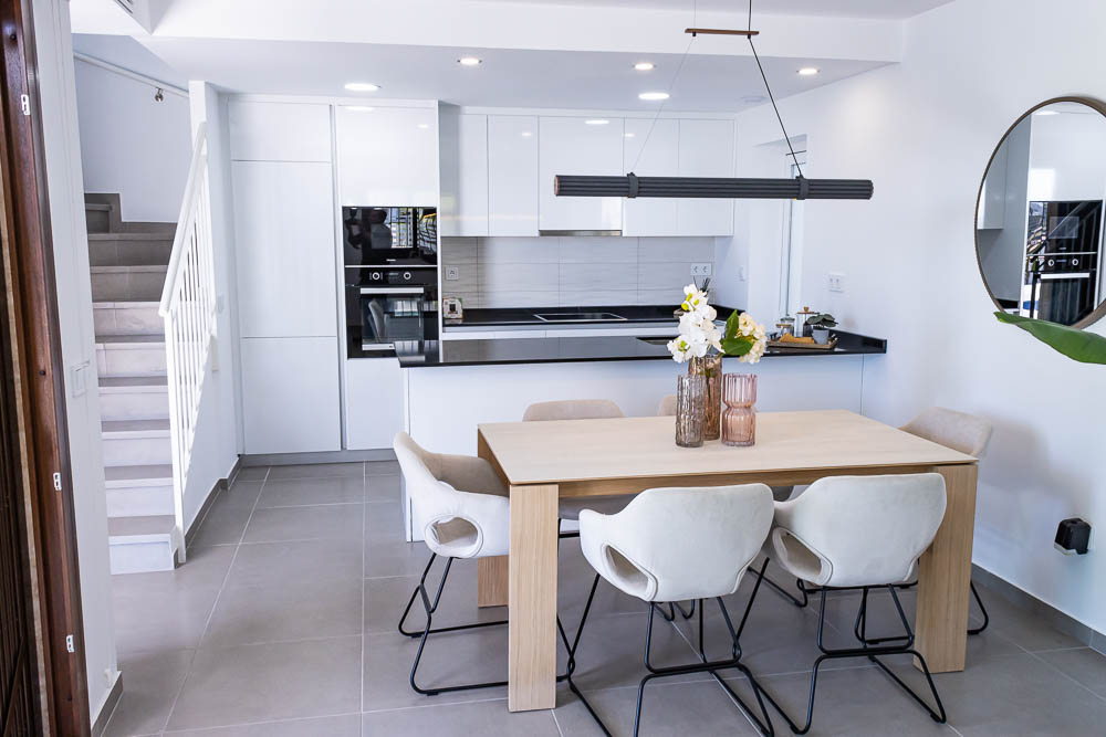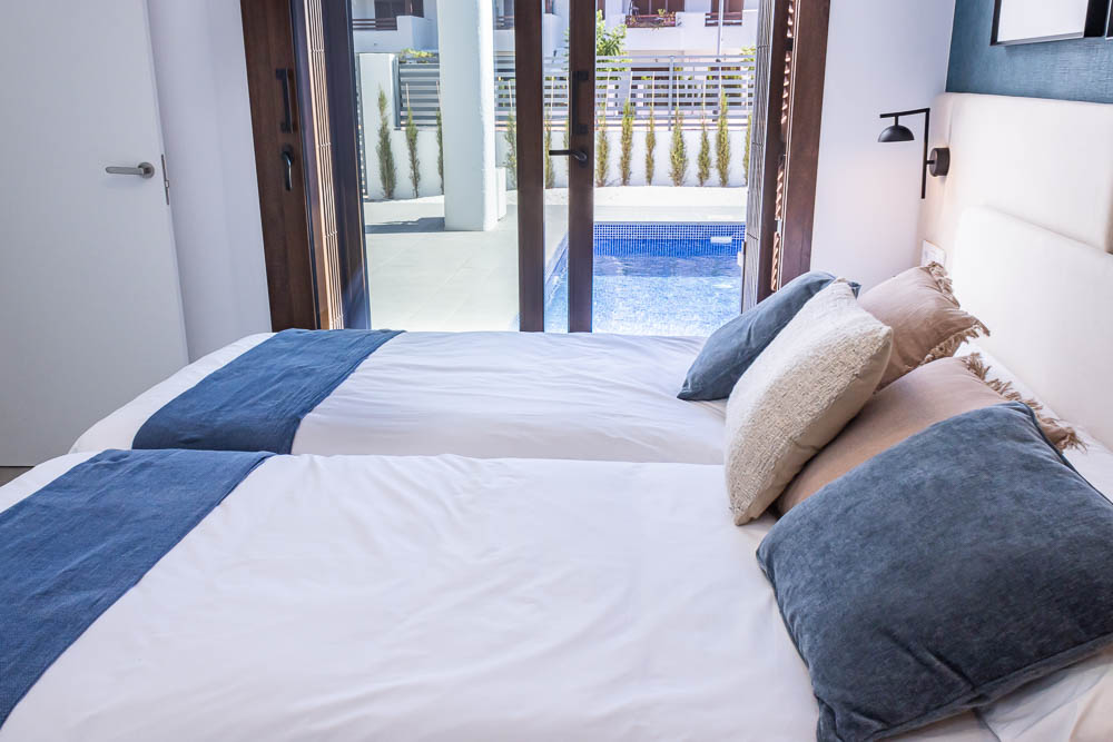 La construcción cuenta con calidades premium: ventanas de aluminio con doble cristal para un aislamiento termo-acústico perfecto, pre-instalación de aire acondicionado, puerta de seguridad y rejas de diseño. Además, se ofrece la opción de adquirir la vivienda con piscina privada (no incluida en el precio base) y totalmente amueblada y equipada, para que su única preocupación sea disfrutar del paraíso. La parcela incluye también parking exterior privado.
