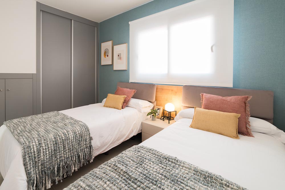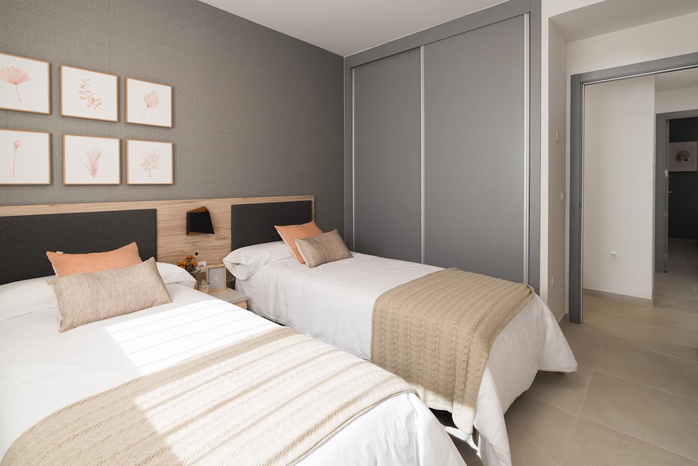 Contamos con amplios apartamentos de 2 dormitorios, con opción de 1 o 2 cuartos de baño, adaptándose perfectamente a sus necesidades. Podrá elegir entre dos tipologías principales: