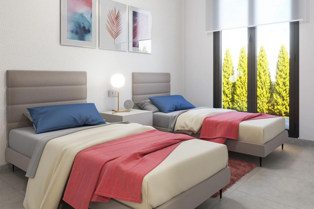 Esta villa de 3 dormitorios y 2 baños completos se desarrolla en una sola planta funcional y luminosa, con 101,19 m² construidos y una parcela privada desde 385 m², que incluye amplios espacios libres y un solárium superior de 90,80 m²desde el que disfrutar de excepcionales vistas al cielo almeriense. La orientación este garantiza luminosidad natural durante todo el día y unos amaneceres espectaculares sobre el Mediterráneo.