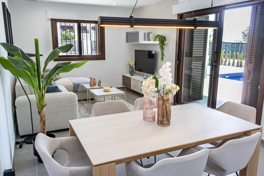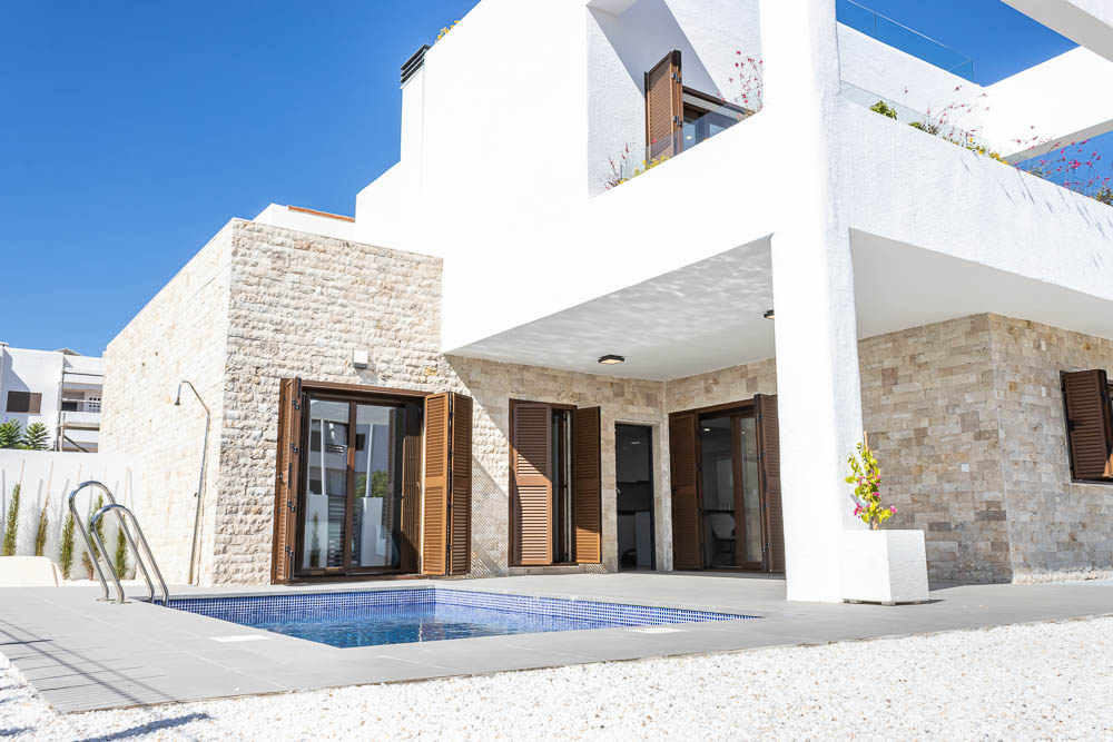 La calidad constructiva es excelente, incluyendo ventanas de aluminio con doble cristal para un aislamiento térmico y acústico superior, rejas de seguridad y pre-instalación de aire acondicionado por conductos. La villa incluye parking privado dentro de la parcela. Como valor añadido, existe la opción de instalar una piscina privada en el jardín y de adquirir la vivienda totalmente amueblada y equipada bajo petición, permitiéndole personalizar su nuevo hogar hasta el último detalle.